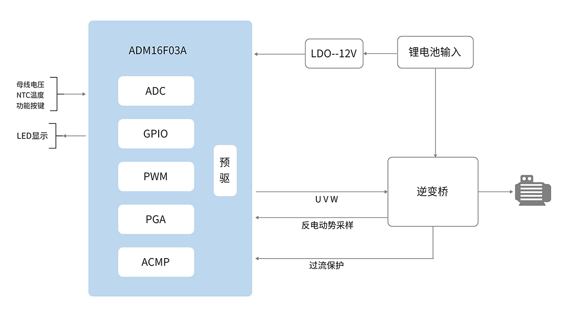 高度集成化方案,內(nèi)置5V LDO及6NMOS預(yù)驅(qū),節(jié)省板型空間及成本;反轉(zhuǎn)自停、正轉(zhuǎn)扭力調(diào)節(jié),啟動速度快,無極調(diào)速,調(diào)速平穩(wěn)。