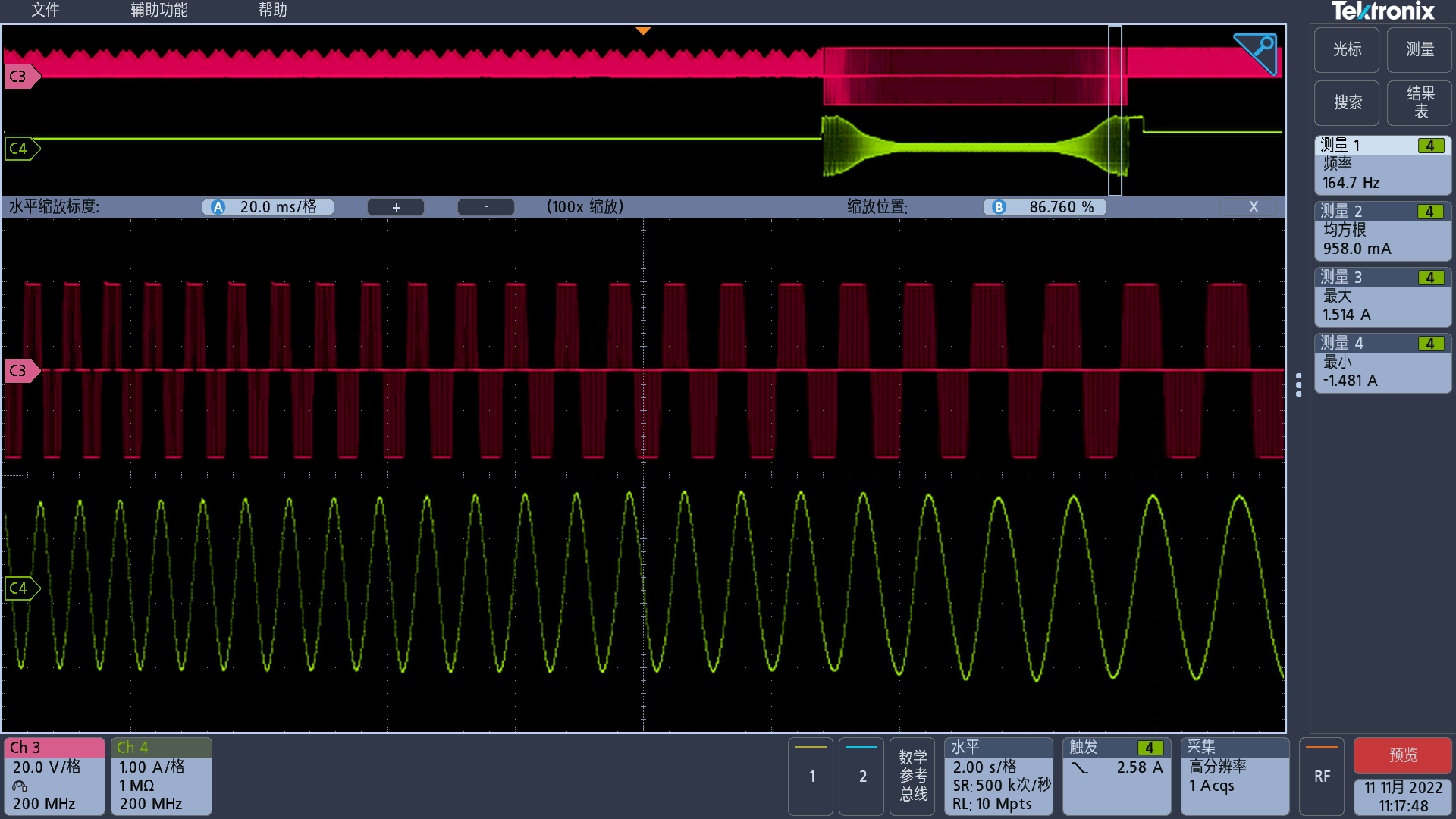 基于以上應(yīng)用介紹,我司設(shè)計了一塊用于驅(qū)動12V兩相四線步進電機的電子水閥的控制DEMO板。板卡實物圖和實測波形圖如下圖所示: