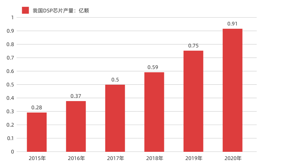 數(shù)據(jù)顯示,2020年我國DSP芯片市場規(guī)模達到136.92億元,需求量達到34.15億顆。而國內DSP芯片產量,到2020年,達到0.91億顆,雖然相比2015年的0.28億顆,翻了大約3倍之多,但是仍然與龐大的市場規(guī)模和需求量形成巨大反差,體現(xiàn)出了強勁的增長潛力和迫切的增長需要。