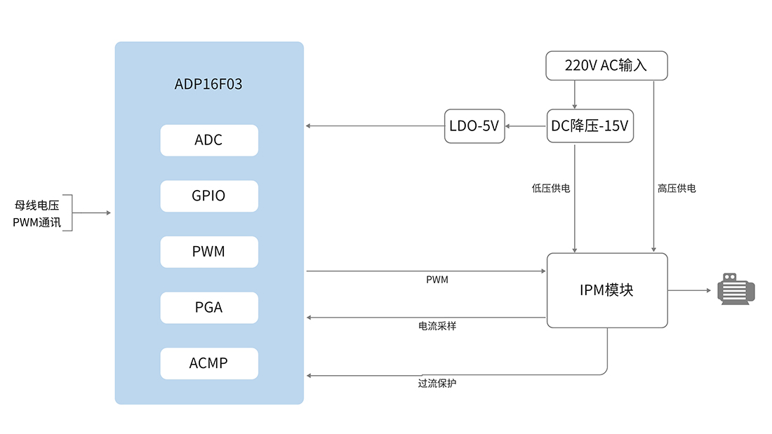 該方案采用精準(zhǔn)的轉(zhuǎn)數(shù)追蹤算法,支持順逆風(fēng)啟動(dòng);使用預(yù)定位切閉環(huán)的啟動(dòng)方式保,證啟動(dòng)更加平順使用自研算法方案,讓電機(jī)控制過(guò)程更加平穩(wěn)。